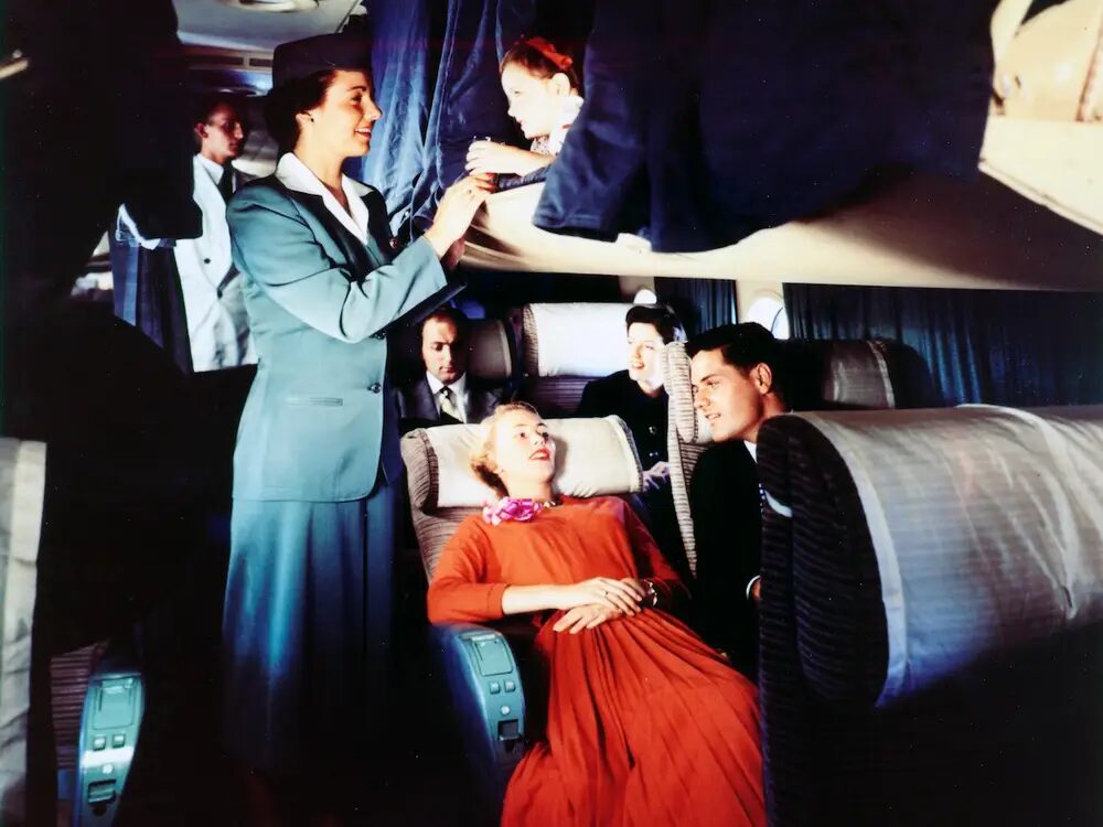 Flying in the 1950s was quite the swanky affair. Picture this: you board the plane and you’re greeted by flight attendants decked out in designer uniforms. These sky ambassadors weren’t just there for safety โ they made sure your flight was top-notch from takeoff to landing.