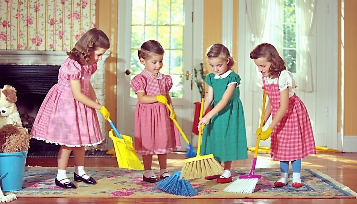 Kids in the 1950s were often part of the household cleaning team. Common tasks included: