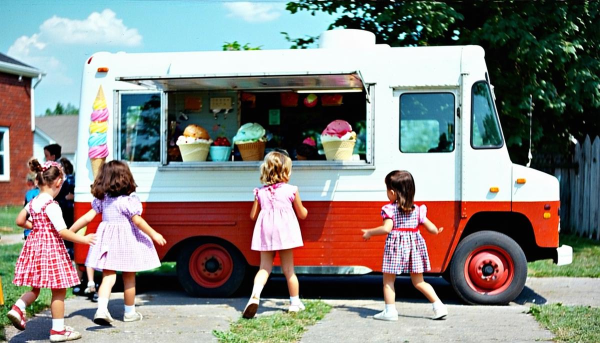 Suddenly, a familiar sound cuts through the airโthe ice cream truck's jingle. Every kid stops and looks up, excited. For one watcher on the bench, this sound sparks their imagination.