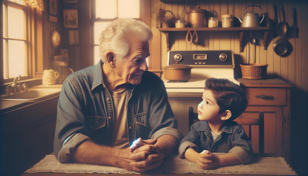 Leaving the table, I felt new respect and understanding, wanting to hold tight to the bonds that matter most. The warm evening sun slipped out the window, whispering of hope and connections that weave through generations like a treasured blanket. And as Grandpa and I stepped away from the squeaky vinyl chairs, the kitchen became just a room again—but one now richer with echoes of shared stories, ready for tomorrow's adventures.