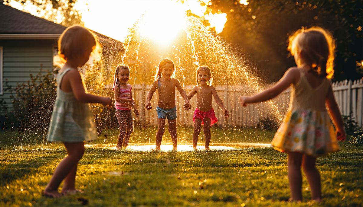 As evening shadows grew, the sprinkler's spray began to weaken. Before heading home, each child had made a memory of pure joy and the sweet simplicity of youthโa memory to warm them through long winters.