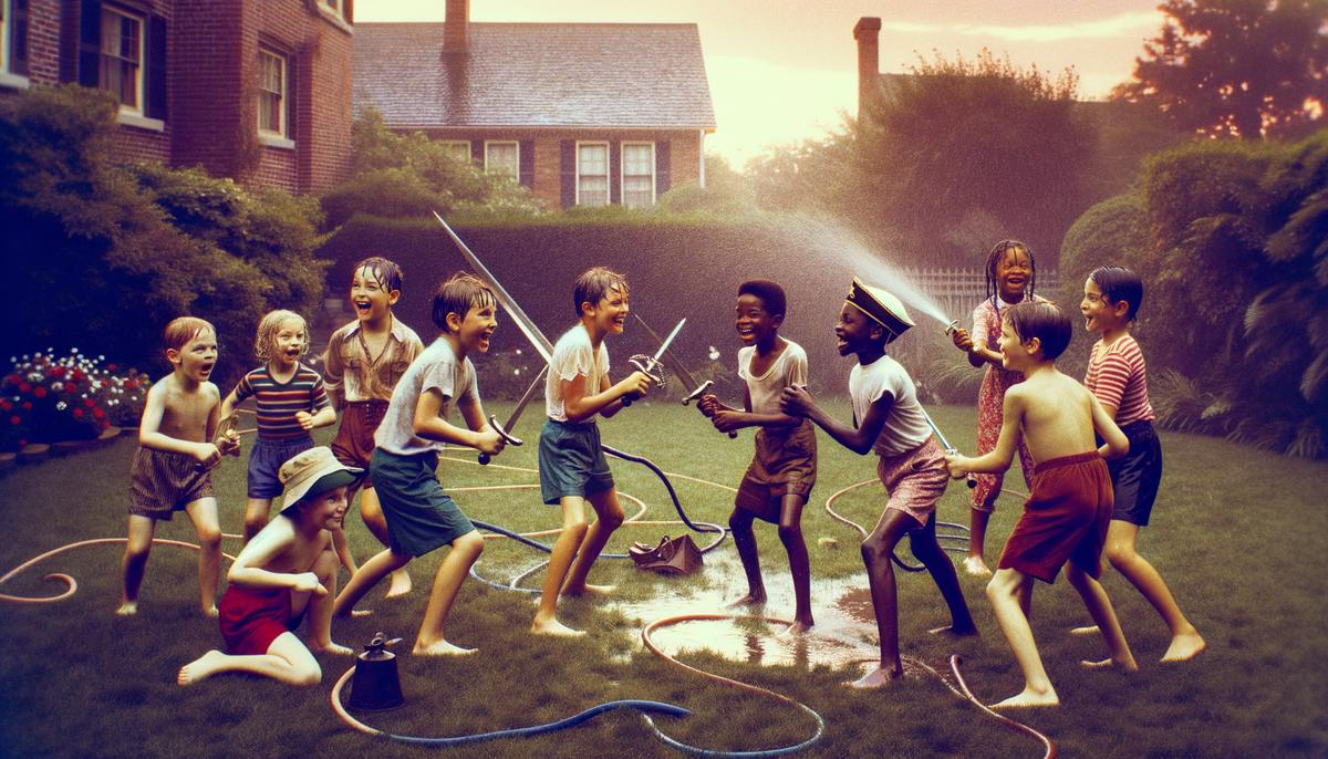 Old man Johnson's backyard was our spot. He'd give us a playful wink as he set up the hose, cigarette in his mouth and garden hat on his head.