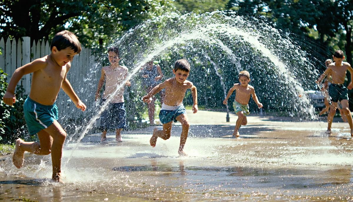 With a twist of the faucet, water burst into the air. Laughter filled the neighborhood as the kids rushed in, led by Betty, diving into the spray without hesitation.